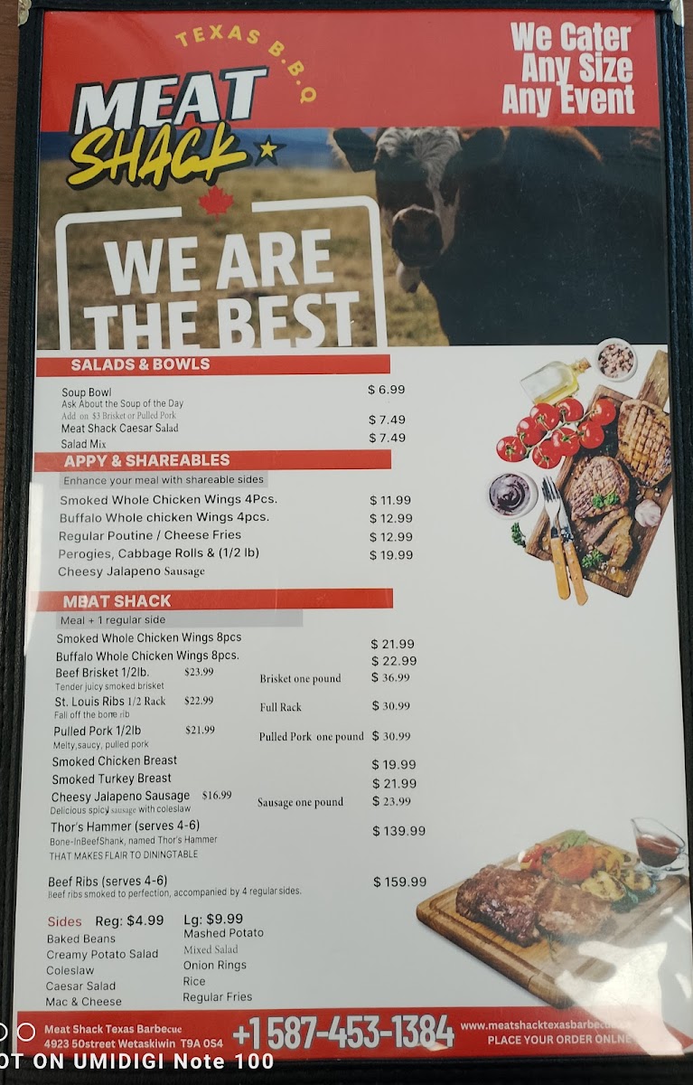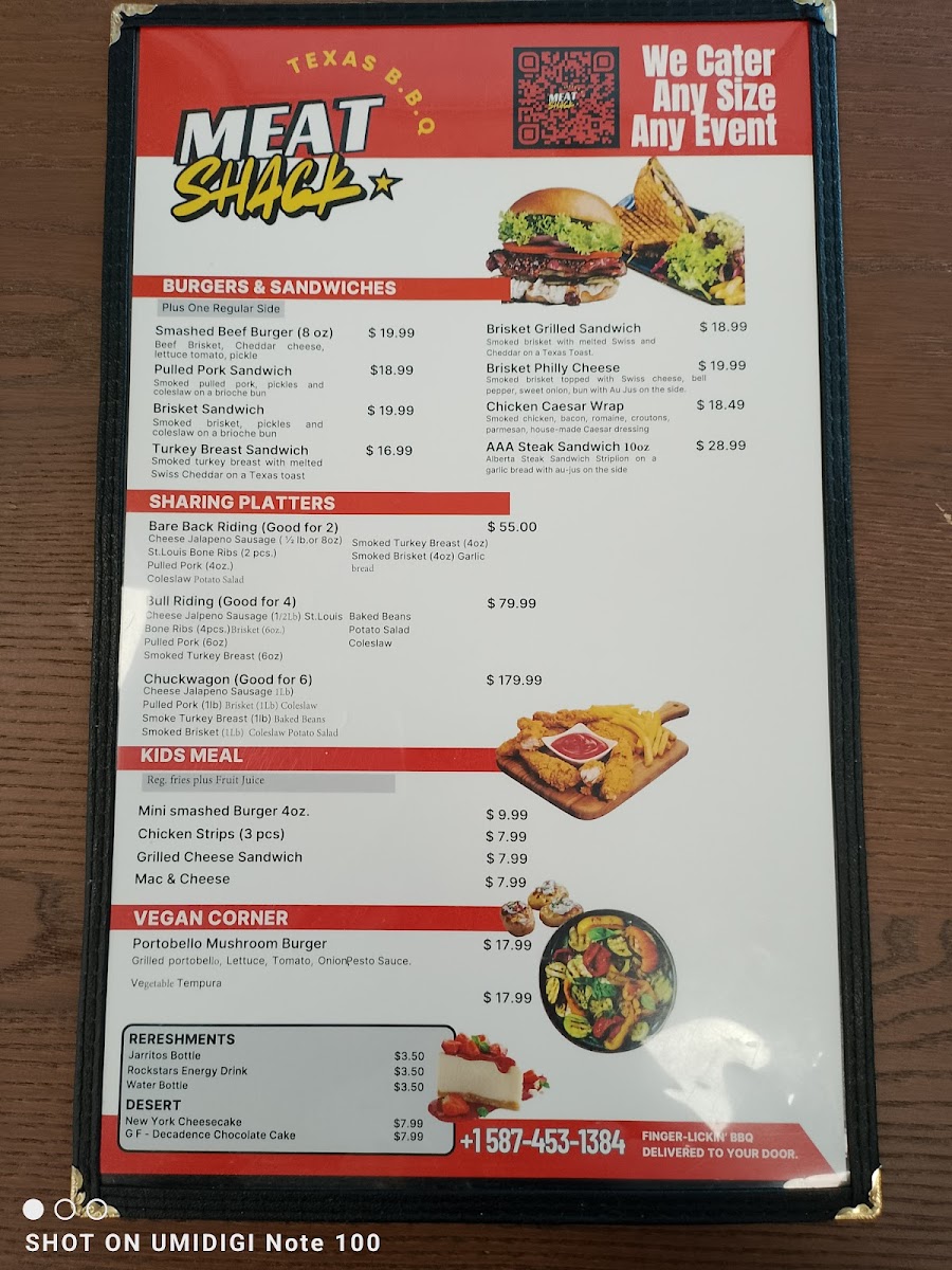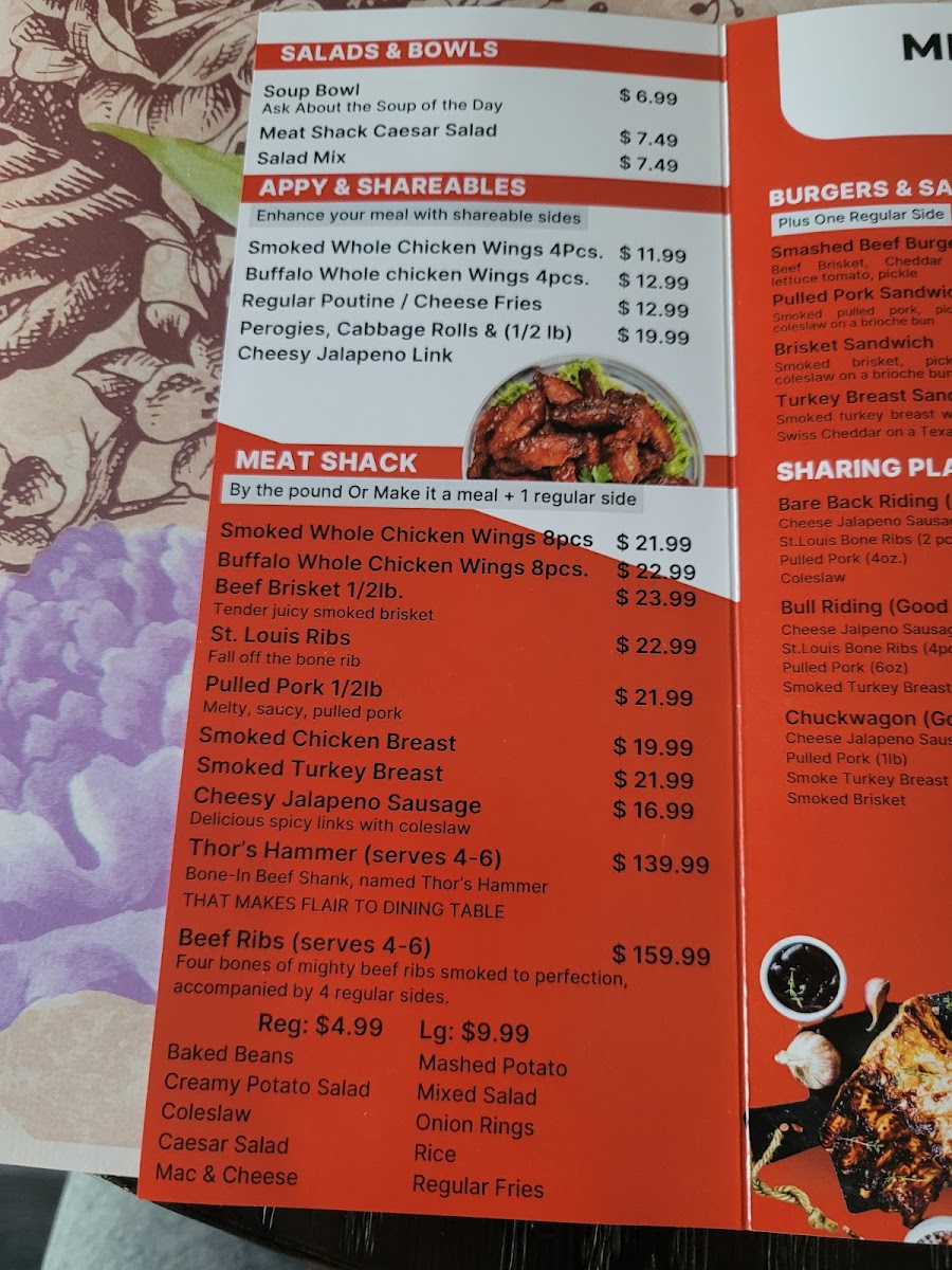 Meat Shack Texas Barbecue in Wetaskiwin is a haven for authentic smoked meats and hearty Texas-style fare. Their sharing platters, like the Bull Riding, serve generous portions of cheese jalapeño link, smoked brisket, turkey breast, pulled pork, and St. Louis ribs—perfect for gatherings. Burgers and sandwiches shine here, especially the iconic Brisket Sandwich with smoky brisket, pickles, and creamy coleslaw on a fresh brioche bun. For steak lovers, the AAA Striploin steak sandwich offers a juicy, tender bite paired with flavorful Au Jus.